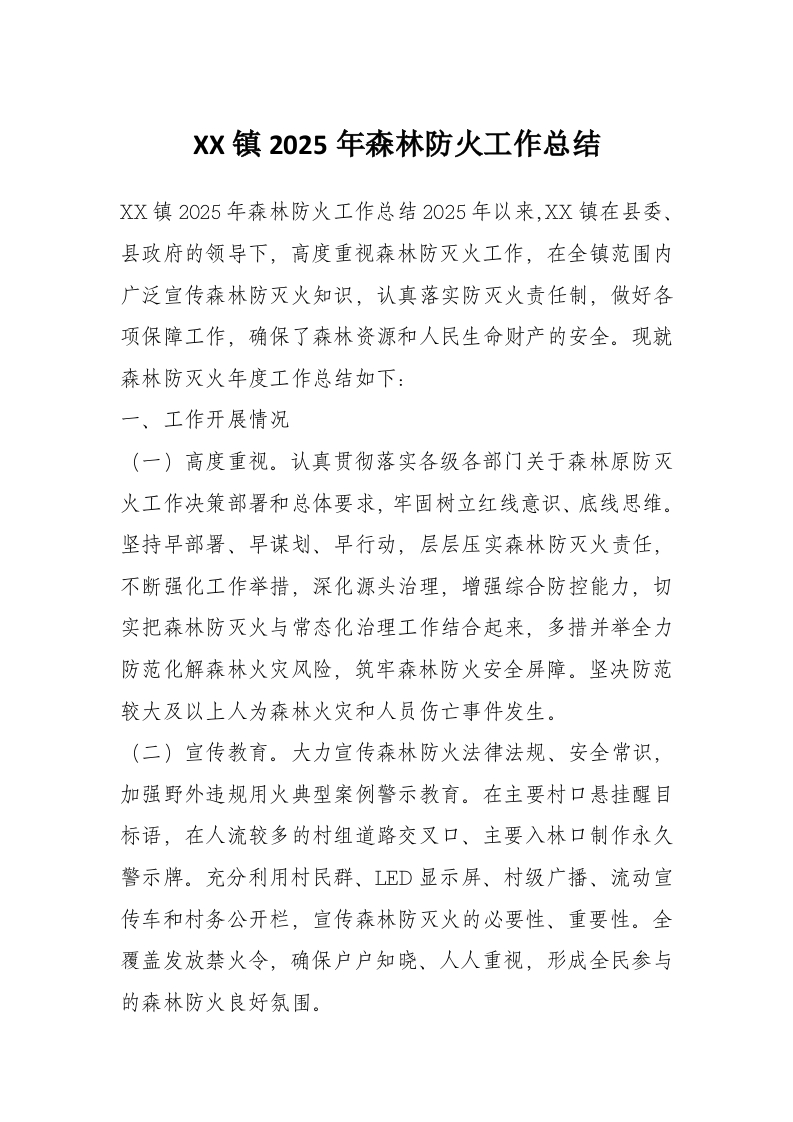 XX镇2025年森林防火工作总结