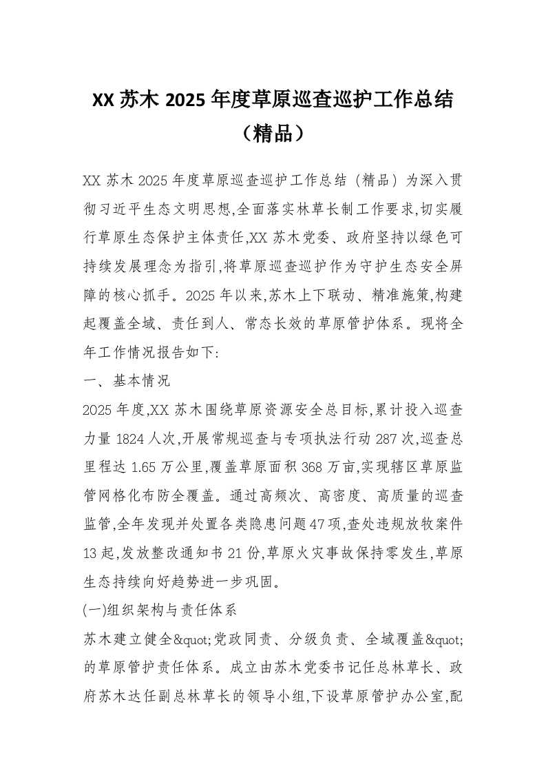 首页写作素材XX苏木2025年度草原巡查巡护工作总结(精品)
