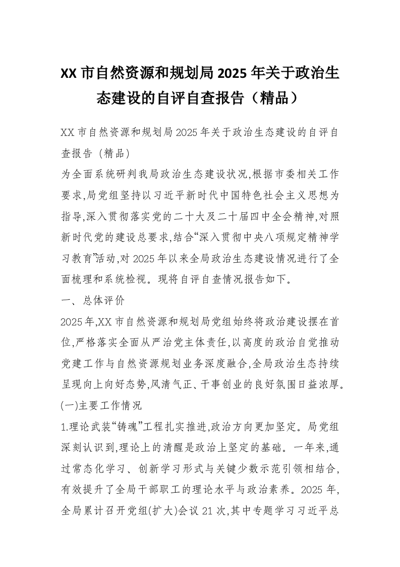 XX市自然资源和规划局2025年关于政治生态建设的自评自查报告(精品)