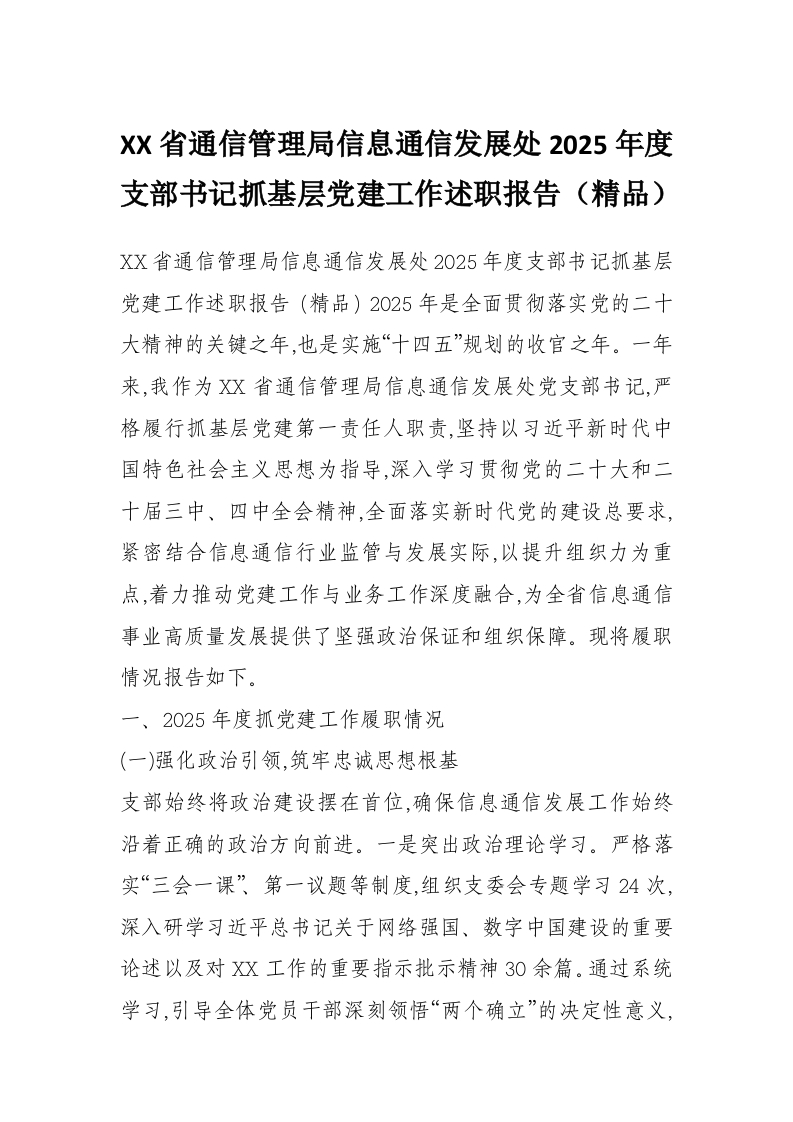 XX省通信管理局信息通信发展处2025年度支部书记抓基层党建工作述职报告(精品)
