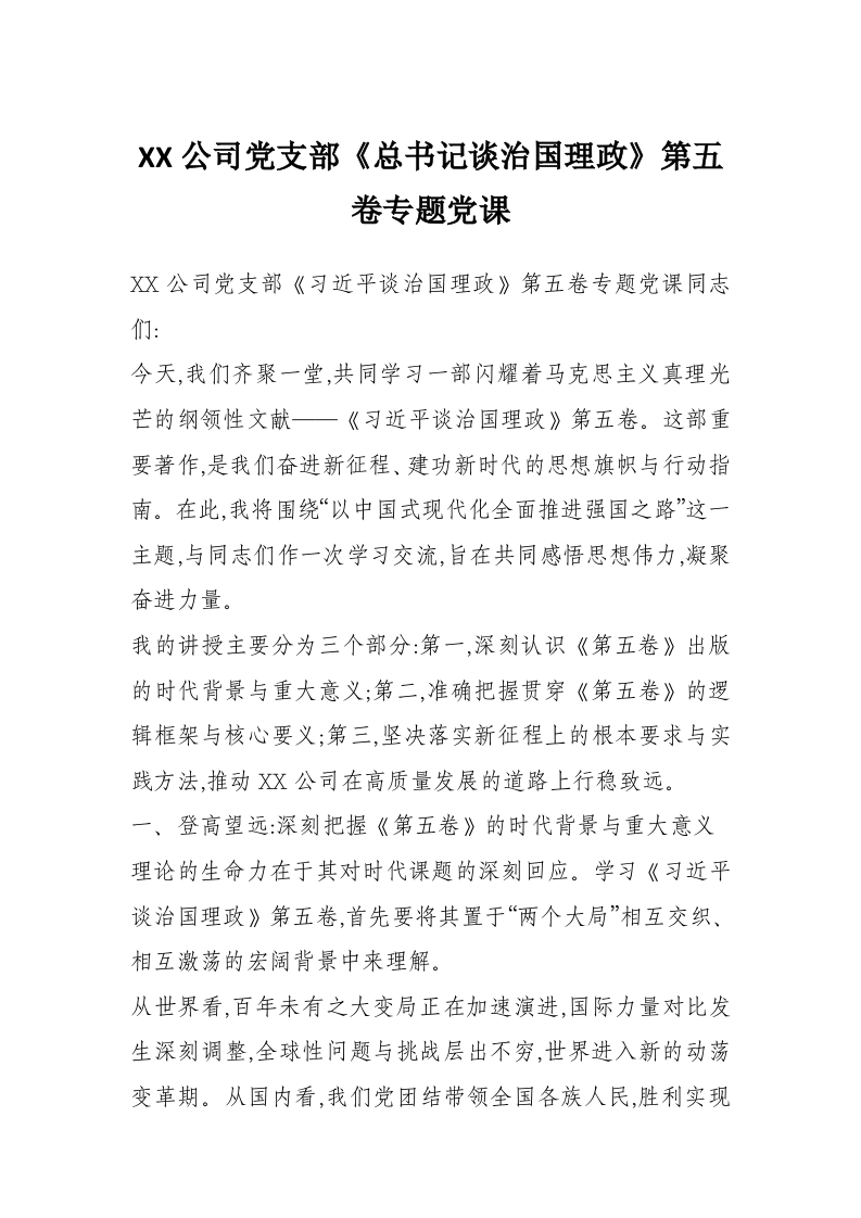 XX公司党支部《总书记谈治国理政》第五卷专题党课