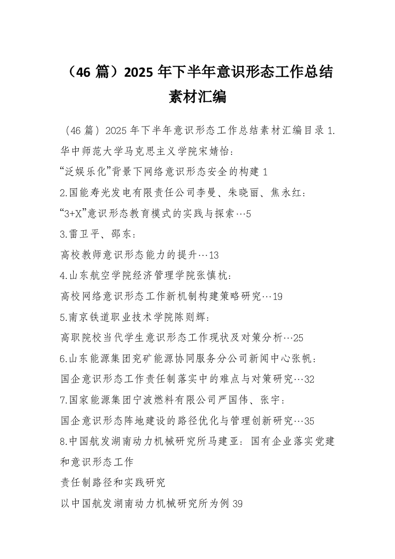 (46篇)2025年下半年意识形态工作总结素材汇编