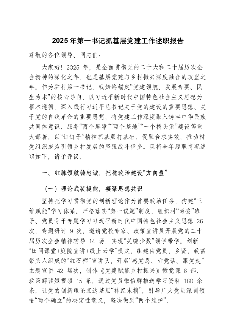 首页工作文档2025年第一书记抓基层党建工作述职报告_副本
