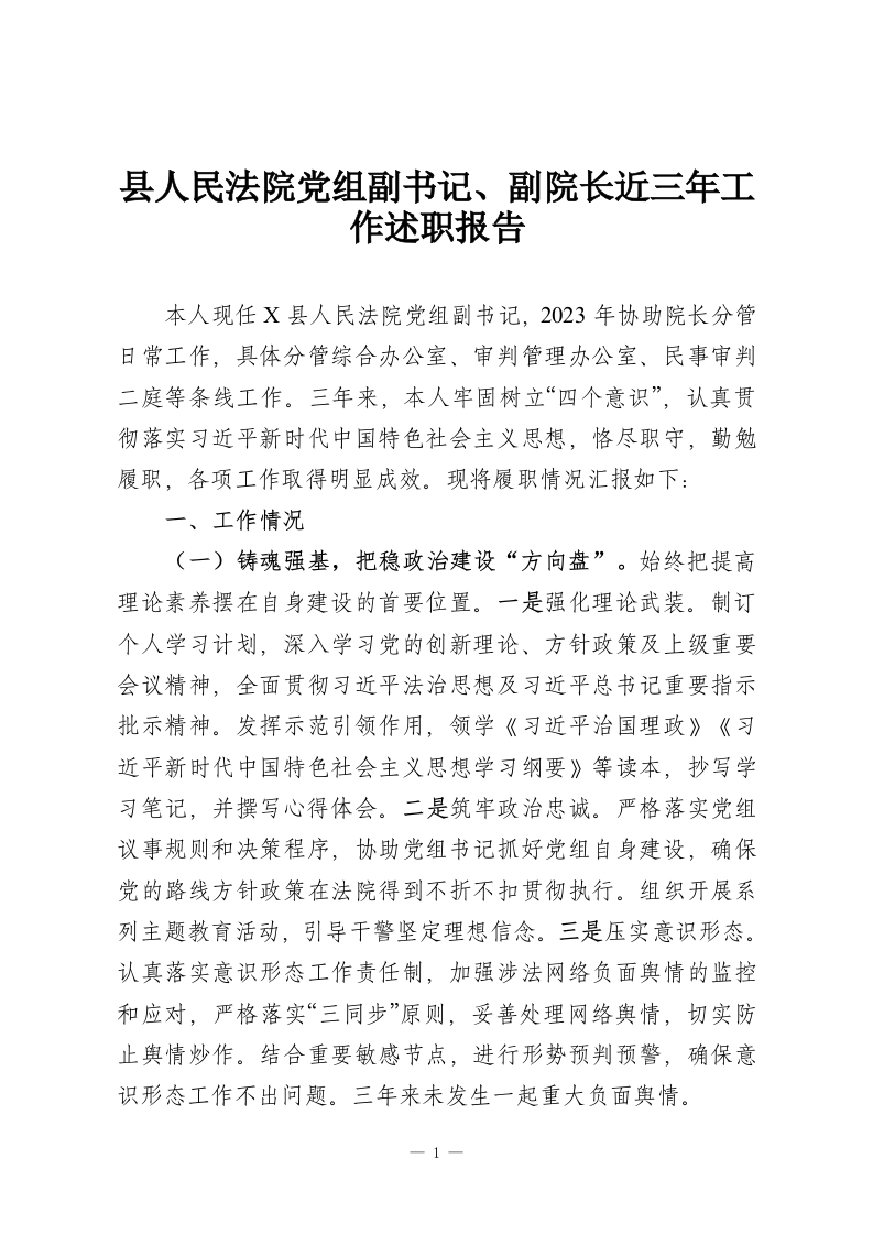 首页工作文档县人民法院党组副书记、副院长近三年工作述职报告