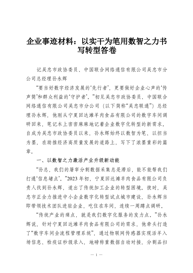 企业事迹材料:以实干为笔用数智之力书写转型答卷