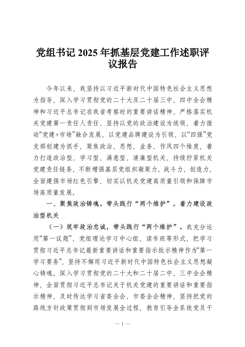 首页工作文档党组书记2025年抓基层党建工作述职评议报告