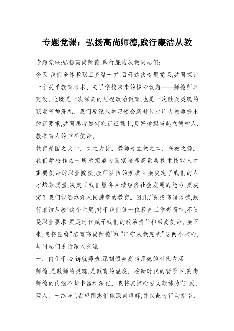 首页学习提升专题党课:弘扬高尚师德,践行廉洁从教