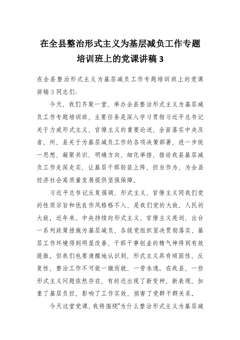 在全县整治形式主义为基层减负工作专题培训班上的党课讲稿3