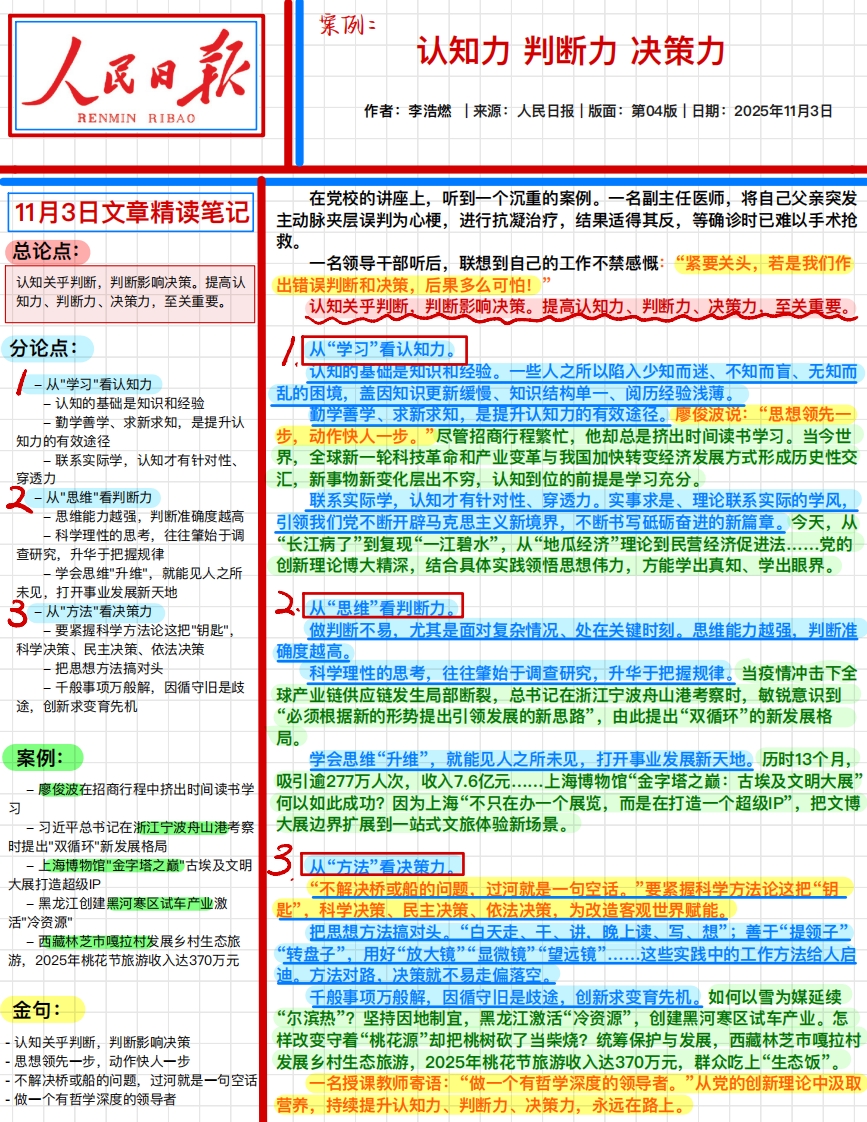 首页人民时评2025.11.03 认知力 判断力 决策力
