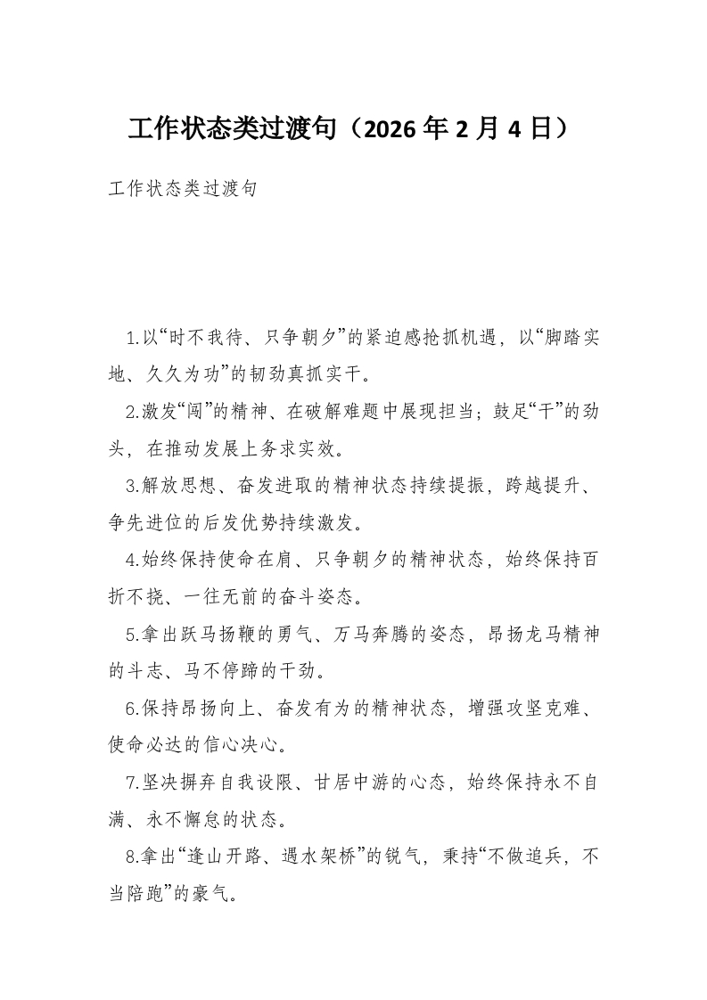 工作状态类过渡句(2026年2月4日)