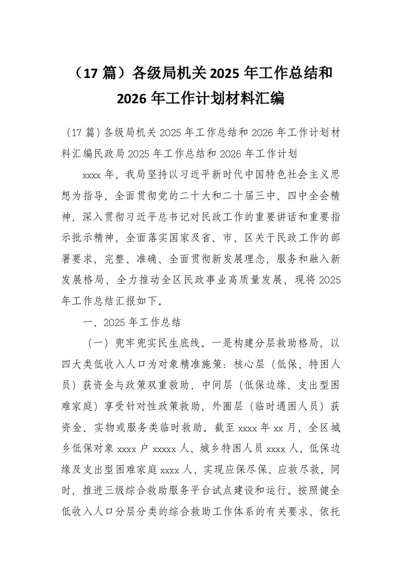 (17篇)各级局机关2025年工作总结和2026年工作计划材料汇编