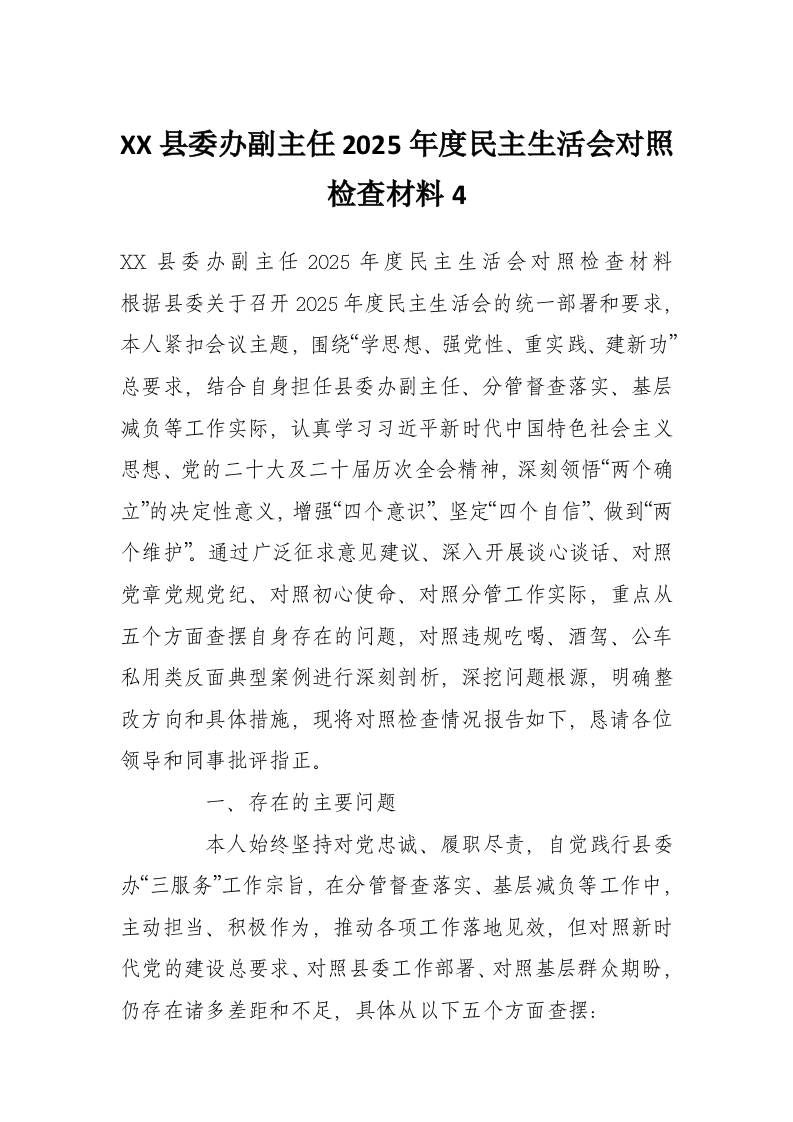 首页写作素材XX县委办副主任2025年度民主生活会对照检查材料4