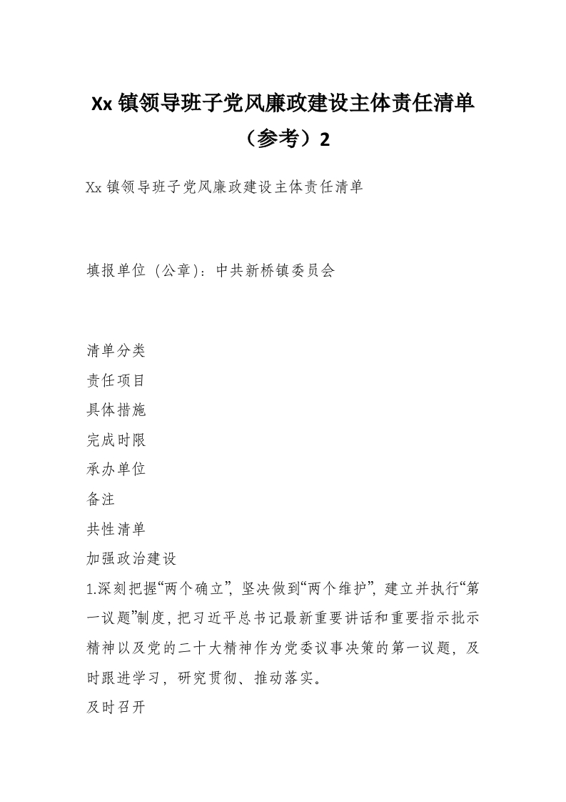 Xx镇领导班子党风廉政建设主体责任清单(参考)2