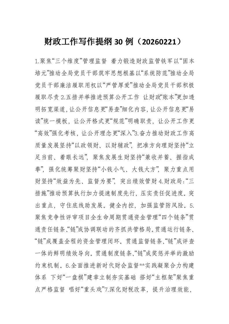 财政工作写作提纲30例(20260221)