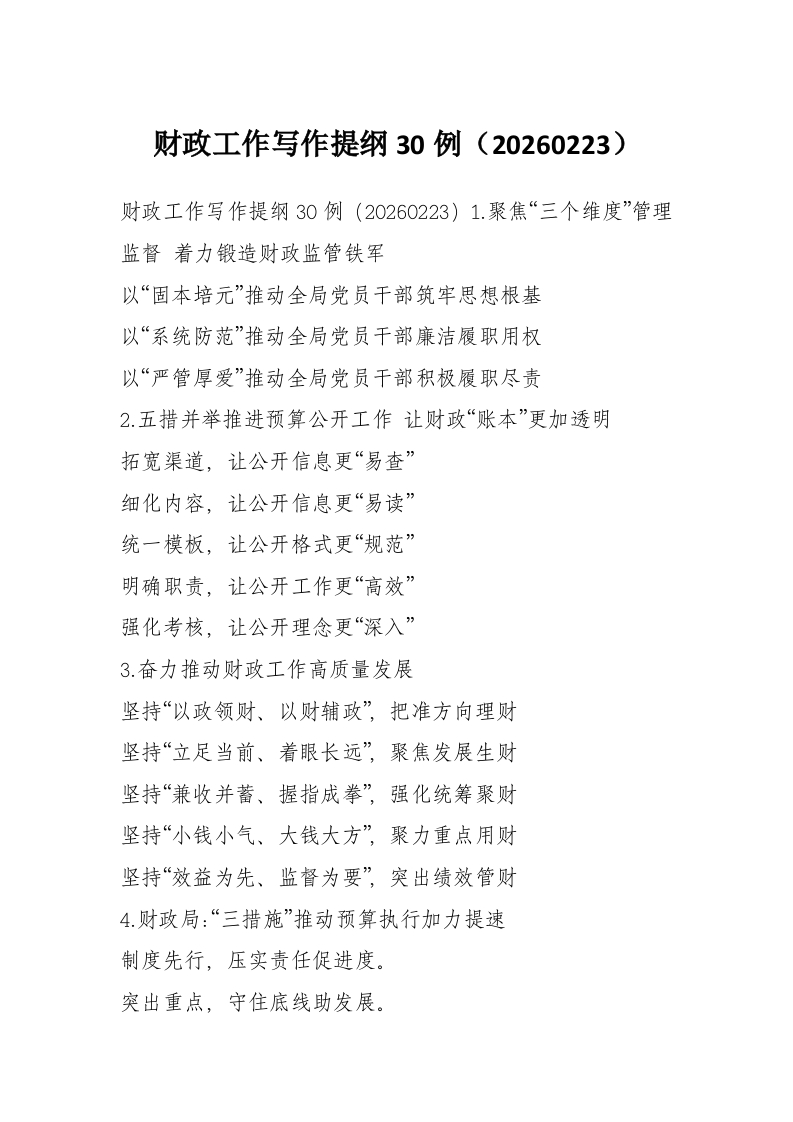 财政工作写作提纲30例(20260223)
