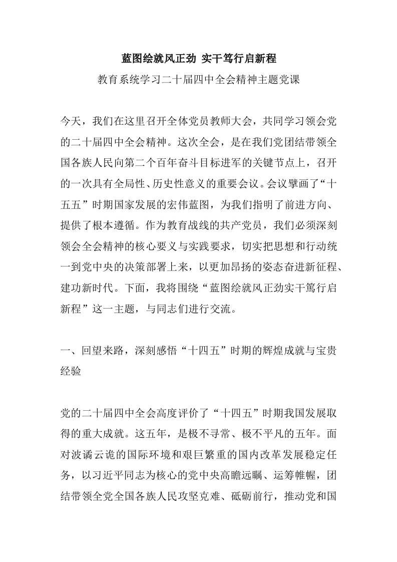 首页精选范文蓝图绘就风正劲 实干笃行启新程PPT教师学习二十届四中***精神党课下载(讲稿)