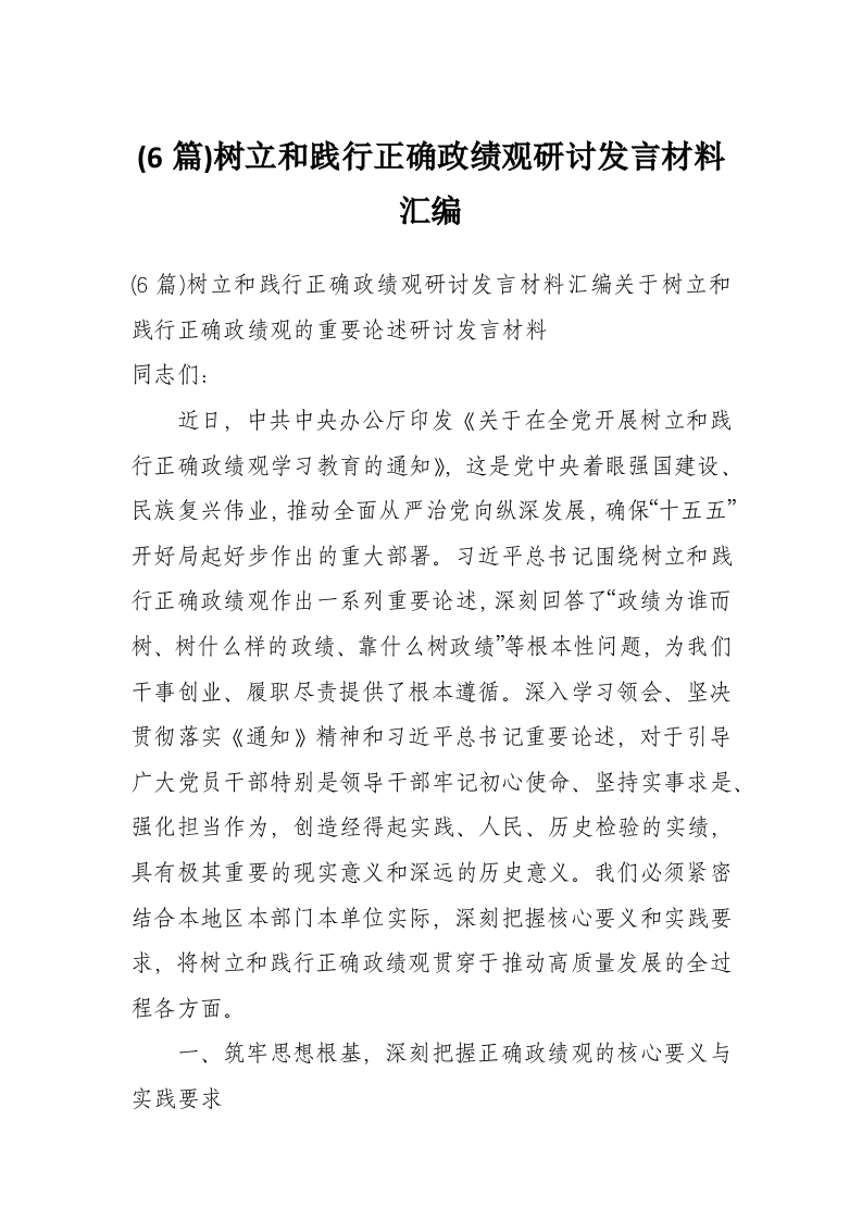 (6篇)树立和践行正确政绩观研讨发言材料汇编