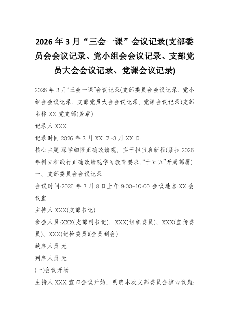 2026年3月“三会一课”会议记录(支部委员会会议记录、党小组会会议记录、支部党员大会会议记录、党课会议记录)