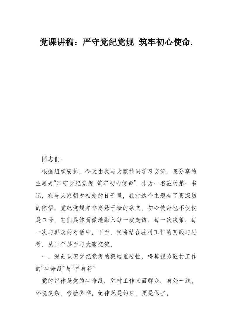 党课讲稿:严守党纪党规 筑牢初心使命.