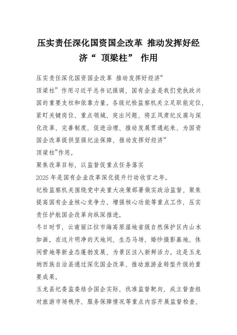 压实责任深化国资国企改革 推动发挥好经济“ 顶梁柱” 作用