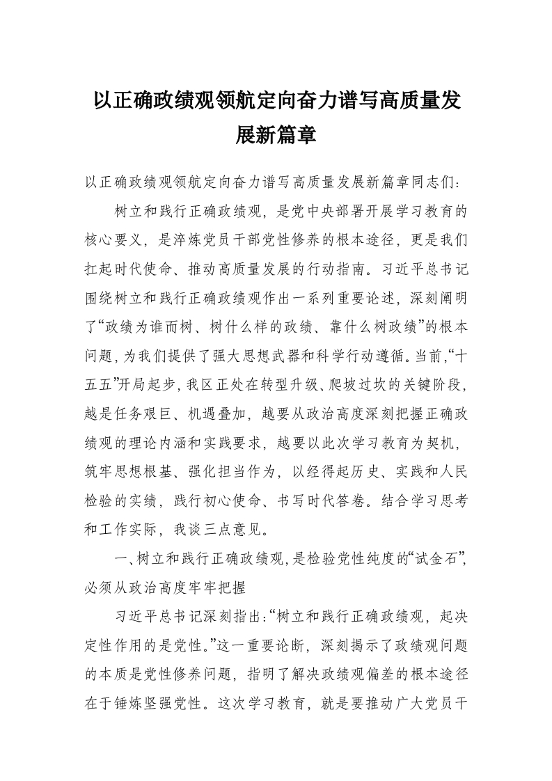以正确政绩观领航定向奋力谱写高质量发展新篇章