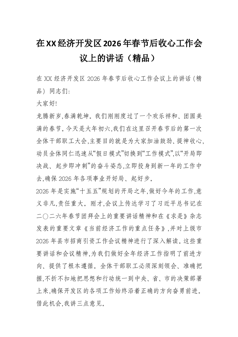在XX经济开发区2026年春节后收心工作会议上的讲话(精品)
