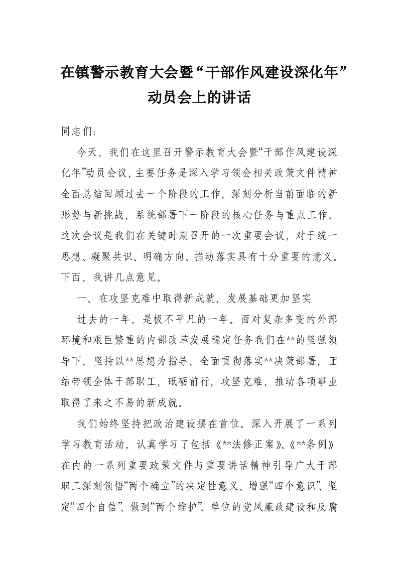 在镇警示教育大会暨“干部作风建设深化年”动员会上的讲话