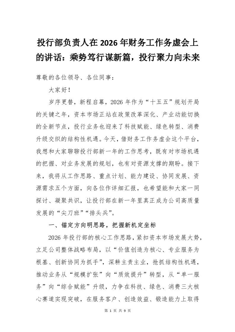 投行部负责人在2026年财务工作务虚会上的讲话:乘势笃行谋新篇,投行聚力向未来