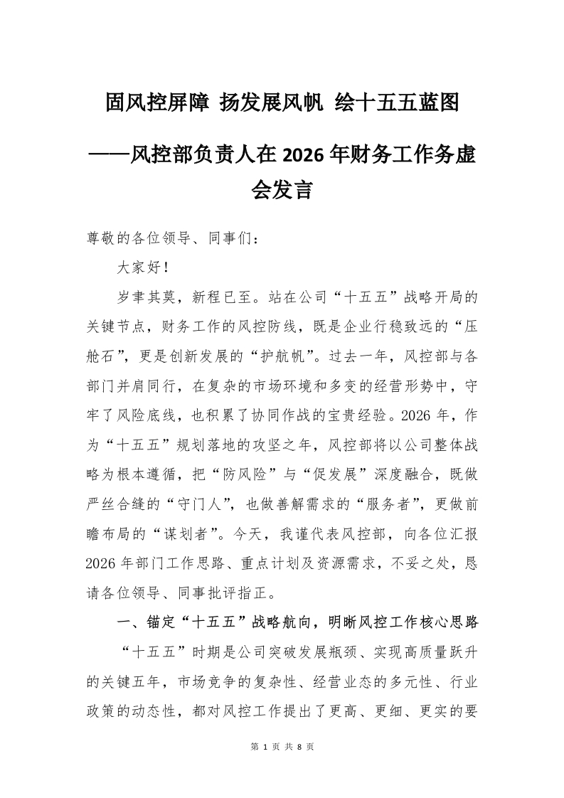 首页讲课讲稿风控部负责人在2026年财务工作务虚会发言:固风控屏障,扬发展风帆,绘十五五蓝图