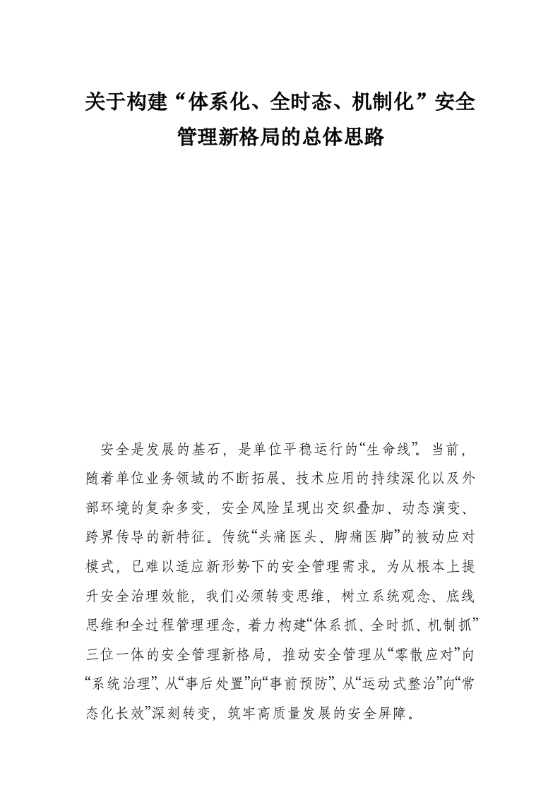 关于构建“体系化、全时态、机制化”安全管理新格局的总体思路