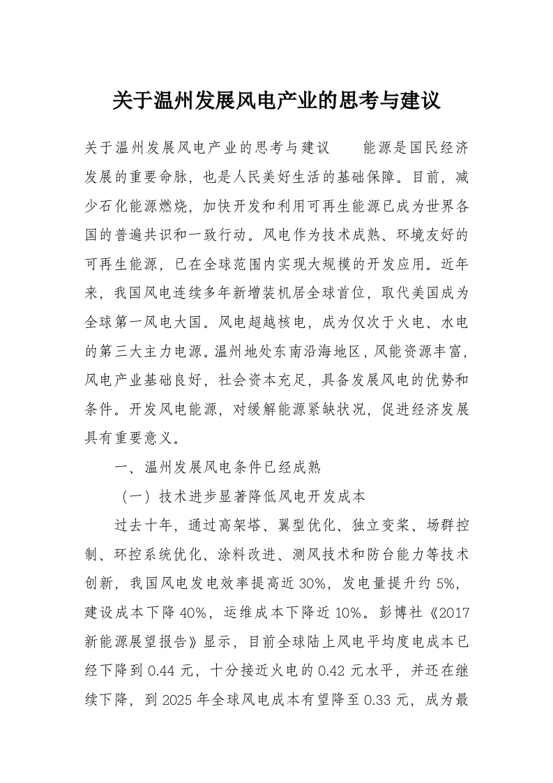 首页工作文档关于温州发展风电产业的思考与建议