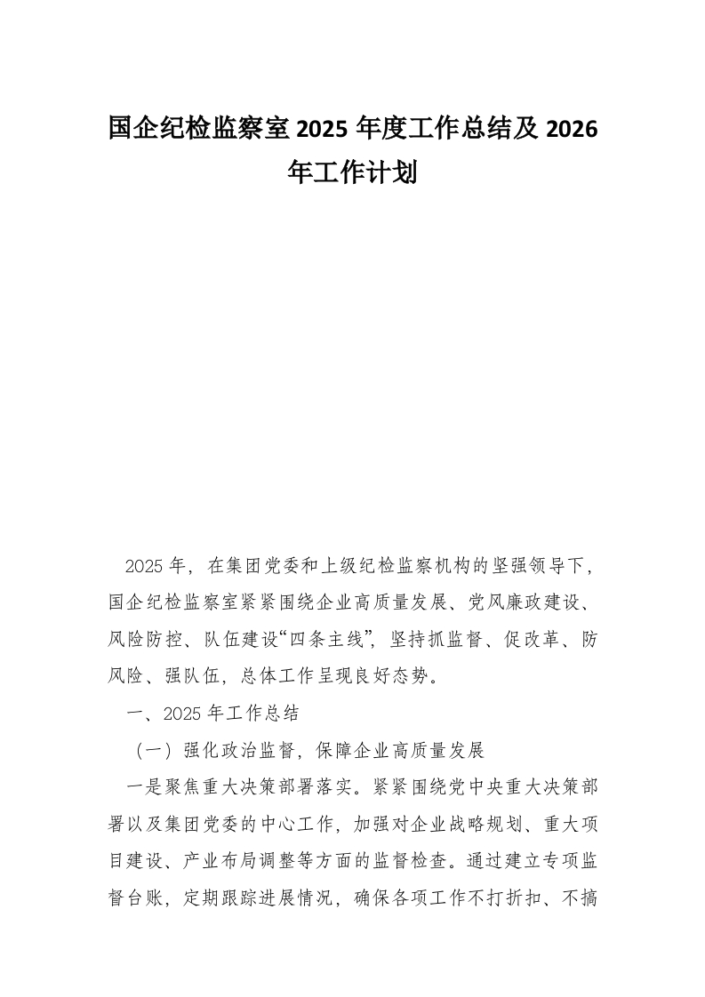 首页工作文档国企纪检监察室2025年度工作总结及2026年工作计划