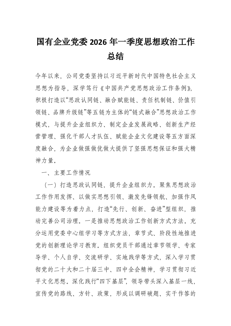 首页工作文档国有企业党委2026年一季度思想政治工作总结