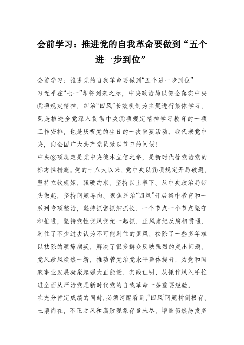 会前学习:推进党的自我革命要做到“五个进一步到位”