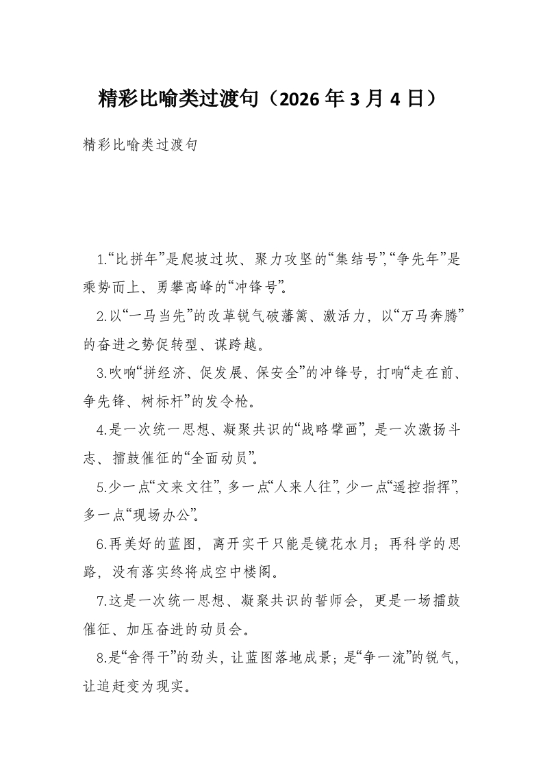 首页工作文档精彩比喻类过渡句(2026年3月4日)