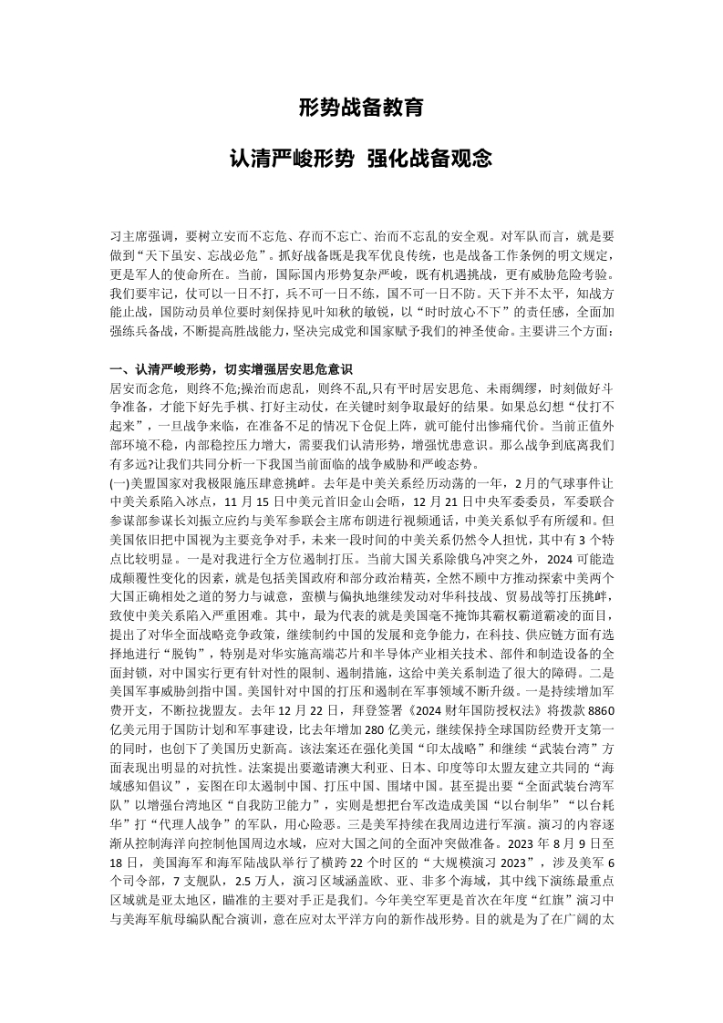 首页工作文档民兵形势战备教育PPT认清严峻形势强化战备观念党课下载(讲稿)