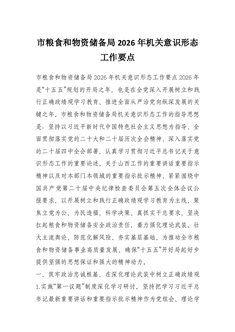 首页工作文档市粮食和物资储备局2026年机关意识形态工作要点