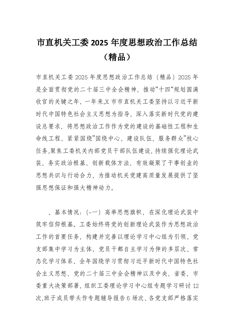 首页工作文档市直机关工委2025年度思想政治工作总结(精品)