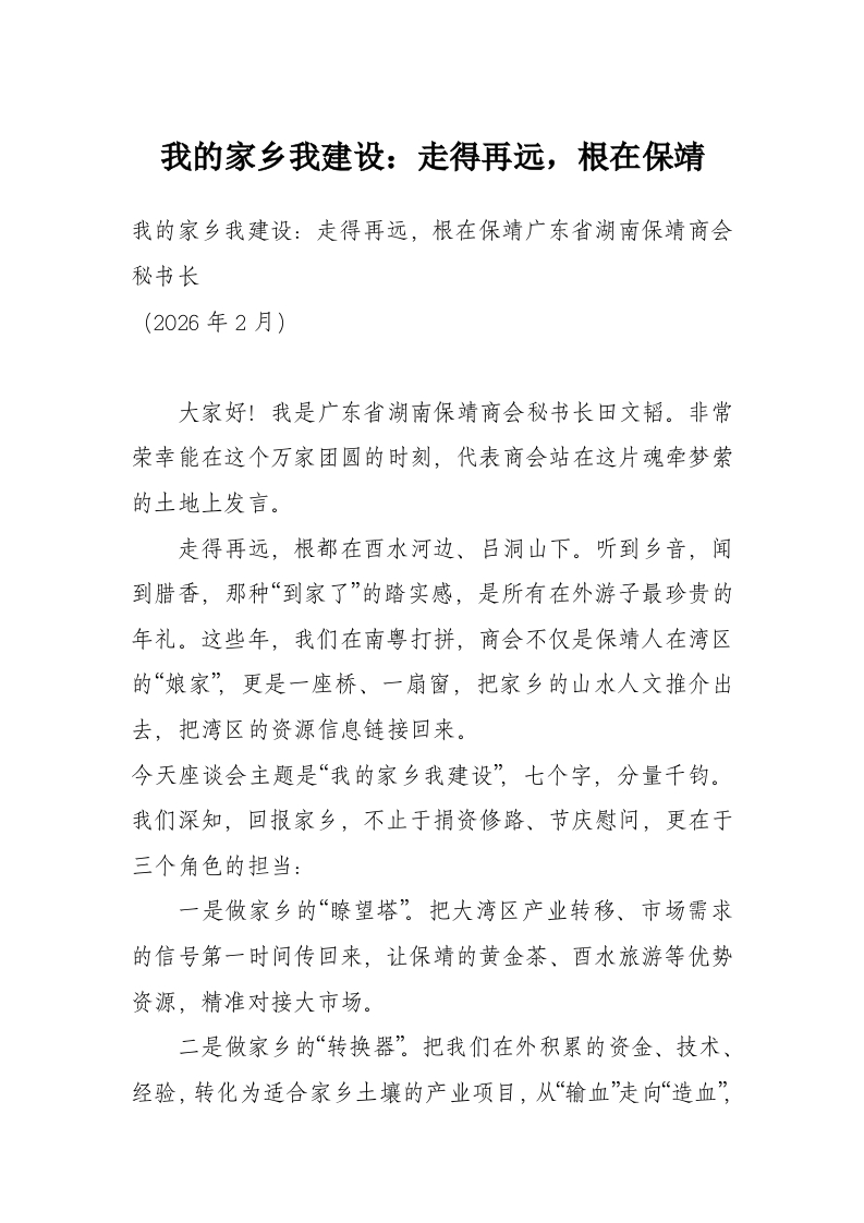 首页工作文档我的家乡我建设:走得再远,根在保靖
