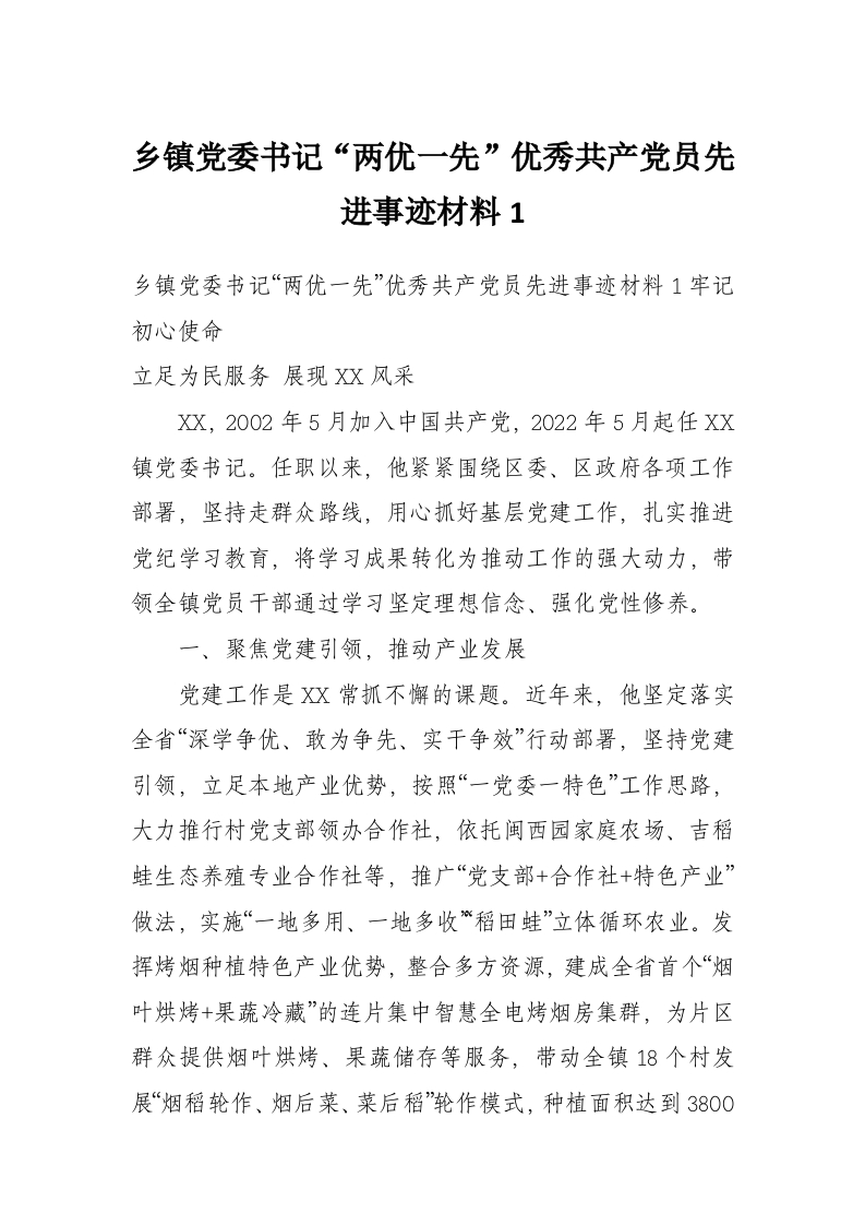 乡镇党委书记“两优一先”优秀***员先进事迹材料1
