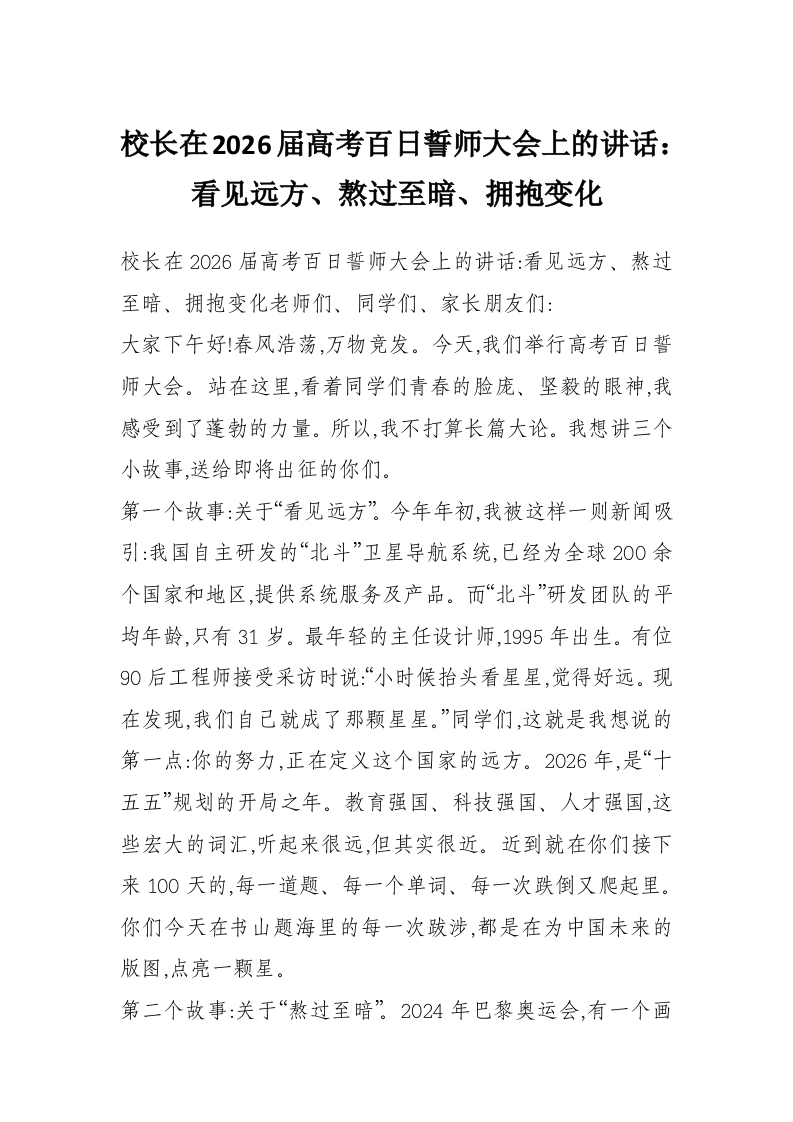 首页工作文档校长在2026届高考百日誓师大会上的讲话:看见远方、熬过至暗、拥抱变化