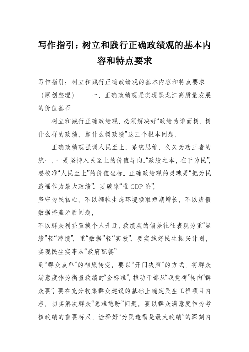写作指引:树立和践行正确政绩观的基本内容和特点要求