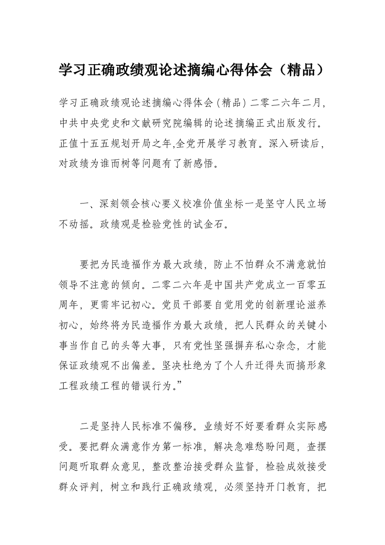 学习正确政绩观论述摘编心得体会(精品)