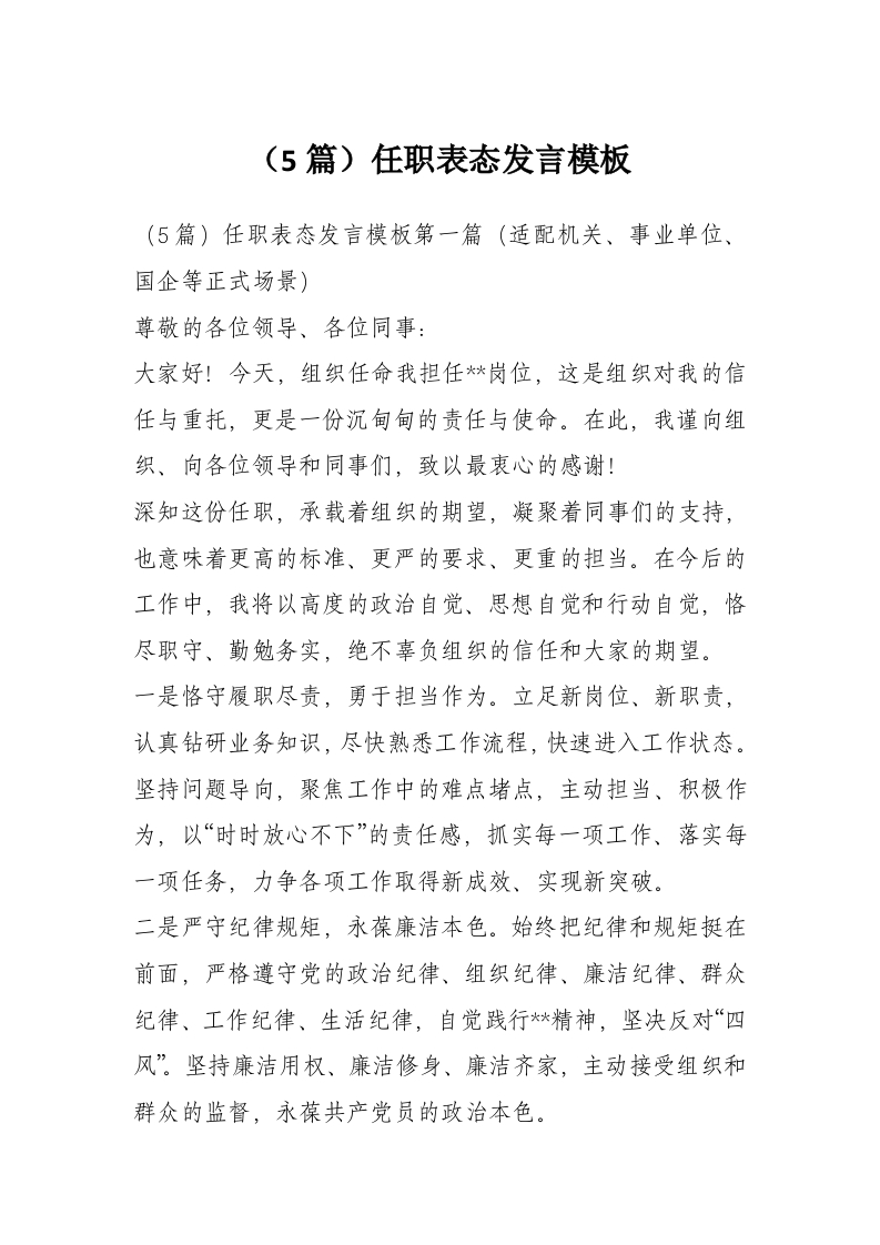 (5篇)任职表态发言模板