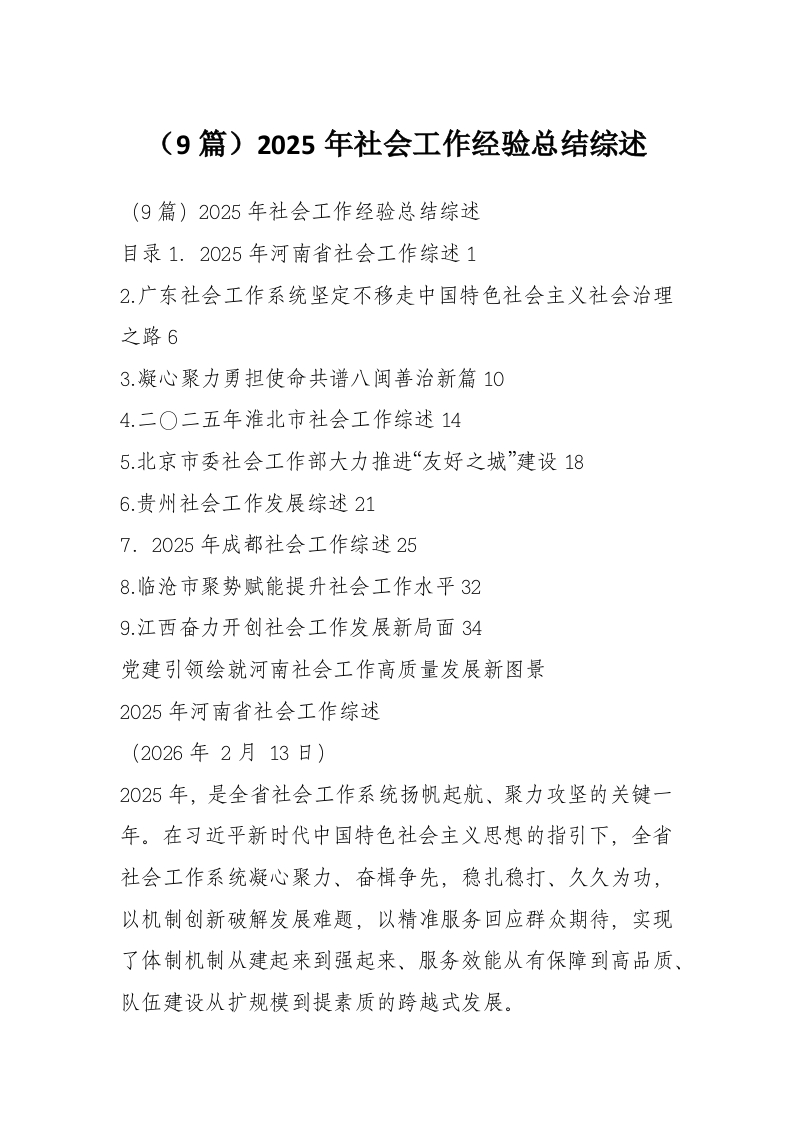 首页学习提升(9篇)2025年社会工作经验总结综述