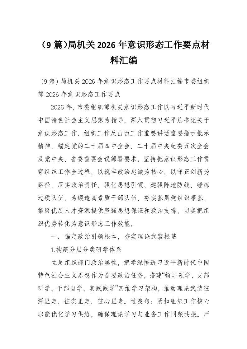 (9篇)局机关2026年意识形态工作要点材料汇编