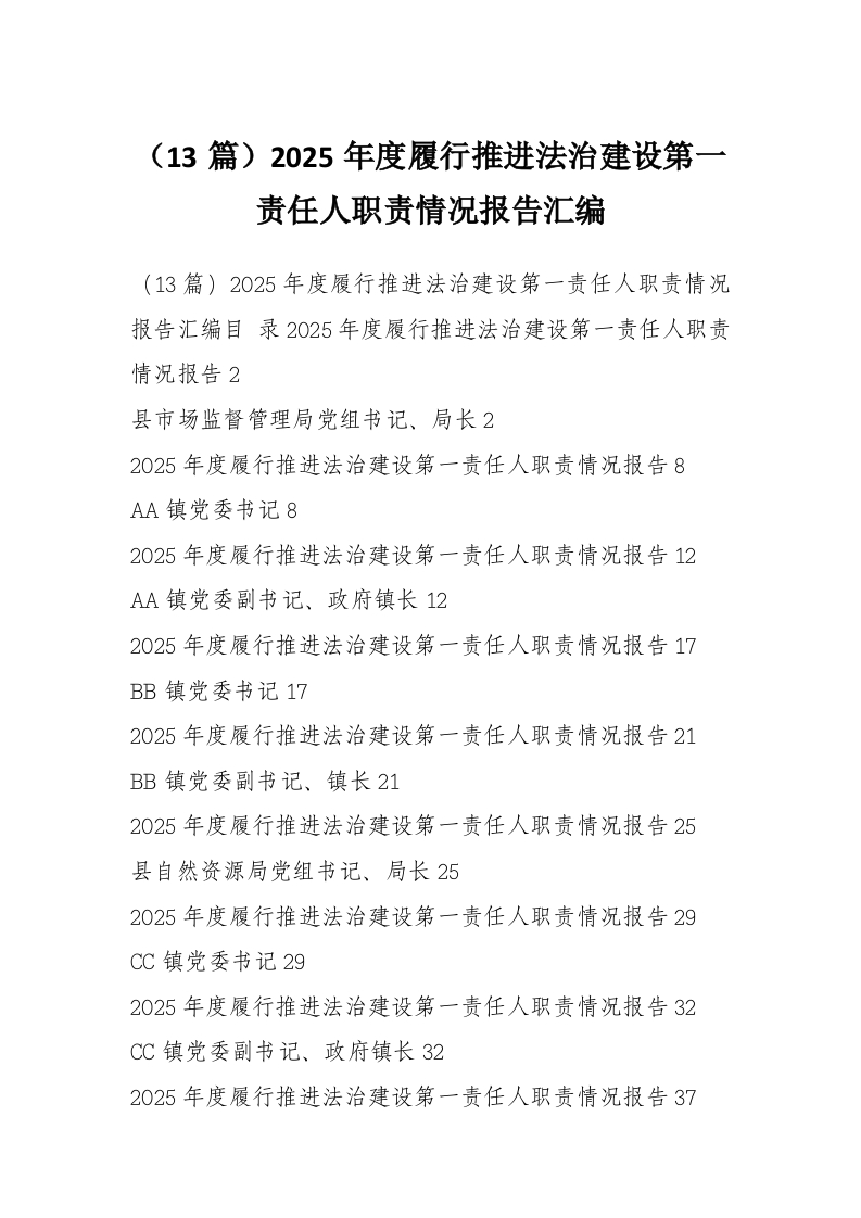 (13篇)2025年度履行推进法治建设第一责任人职责情况报告汇编