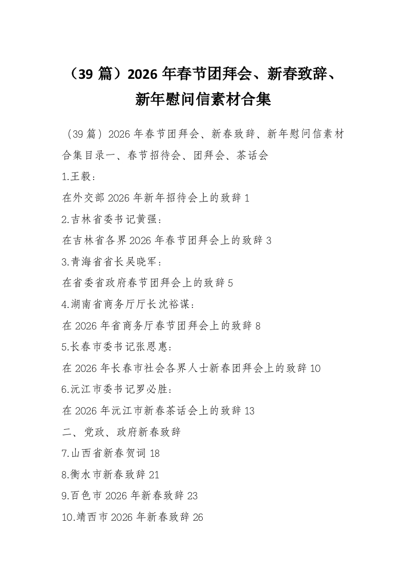 (39篇)2026年春节团拜会、新春致辞、新年慰问信素材合集
