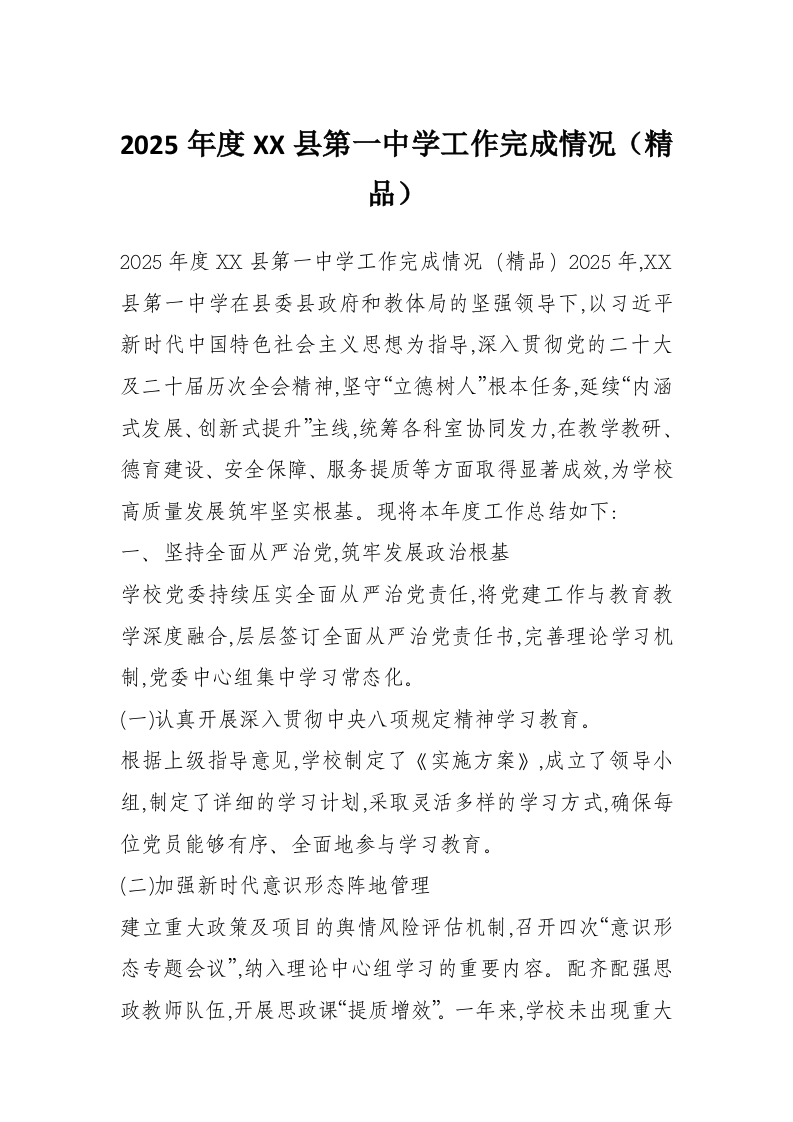 2025年度XX县第一中学工作完成情况(精品)