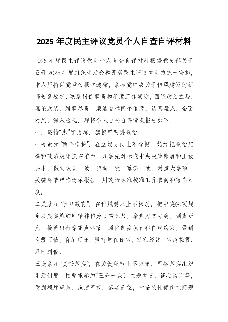 首页学习提升2025年度民主评议党员个人自查自评材料